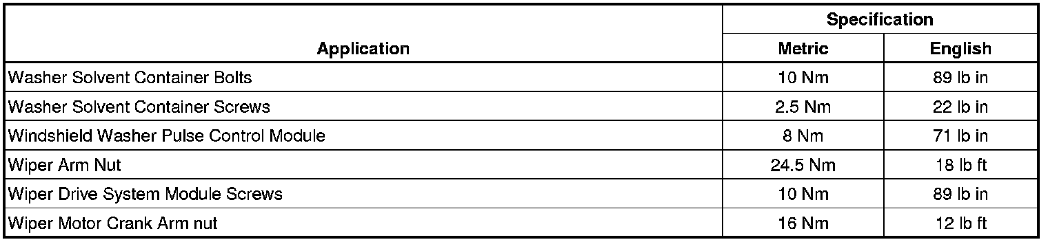 Wiper and Washer Systems: Specifications