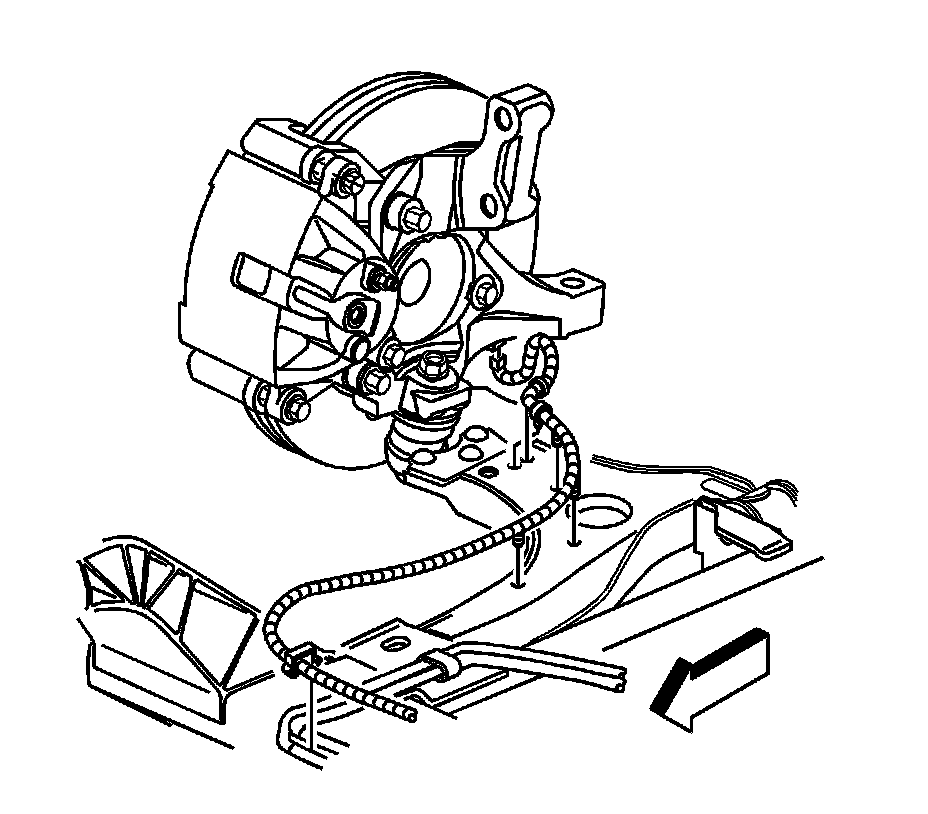 15.If applicable, connect the wheel speed sensor wiring harness to the frame and lower control arm.