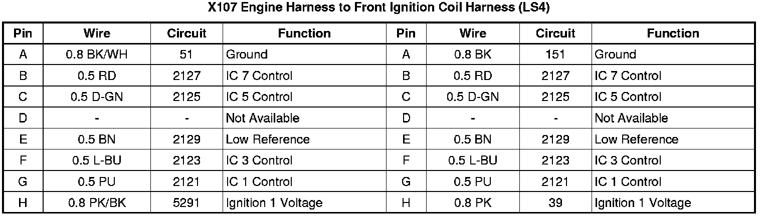 X107 Engine Harness to Front Ignition Coil Harness (LS4)