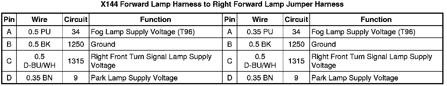 X144 Forward Lamp Harness to Right Forward Lamp Jumper Harness