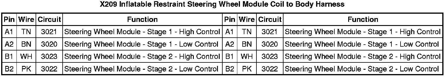 X209 Inflatable Restraint Steering Wheel Module Coil to Body Harness