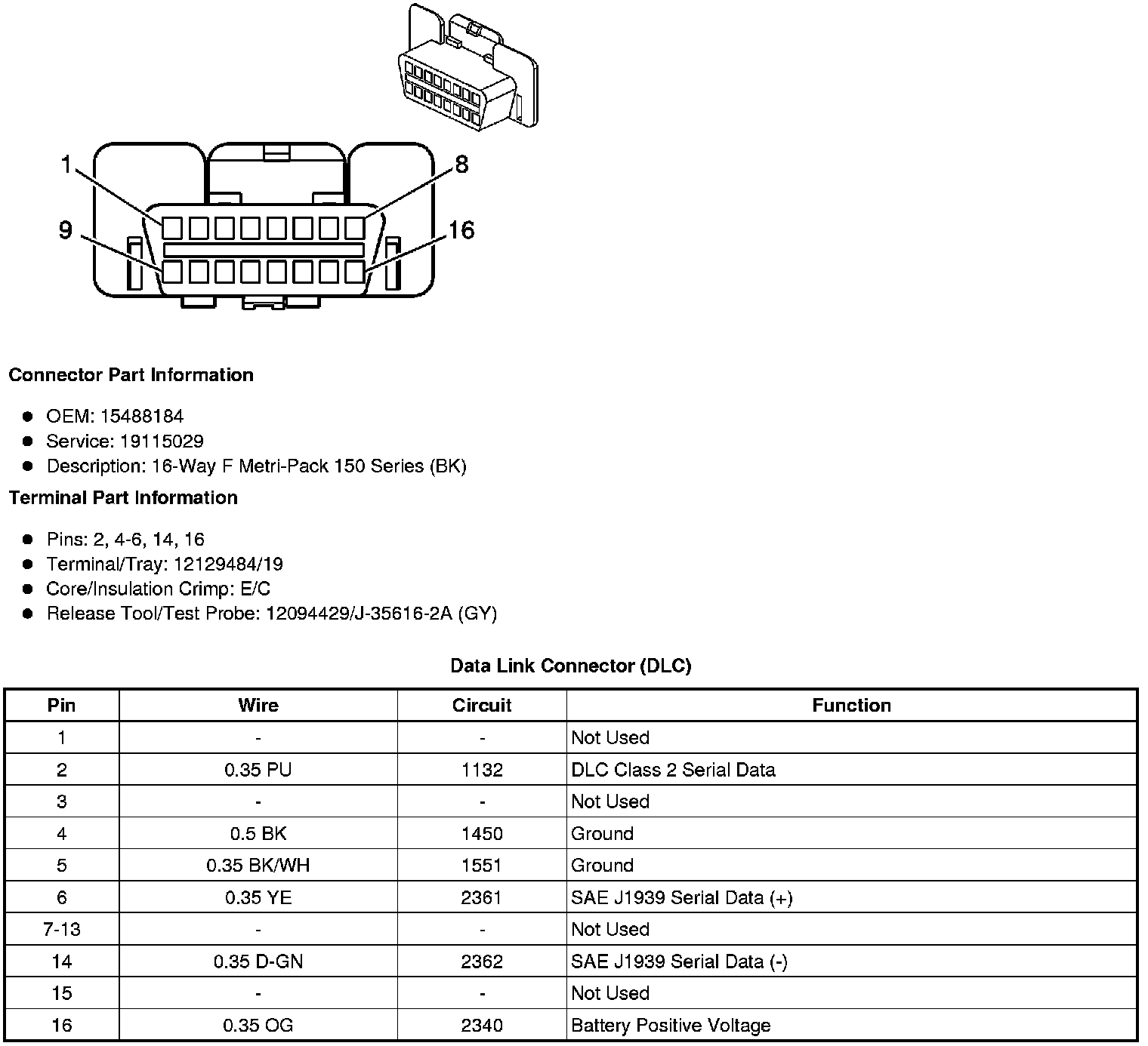 Data Link Connector: Diagrams