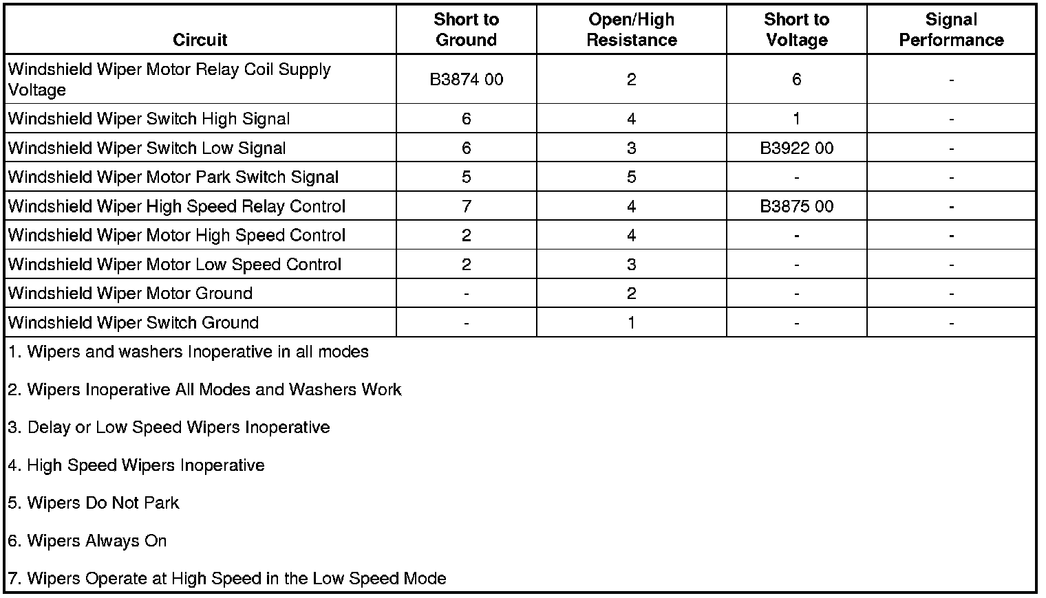 * A short to B+ on any of the wiper/washer switch signal circuits will open the ground trace in the wiper switch.