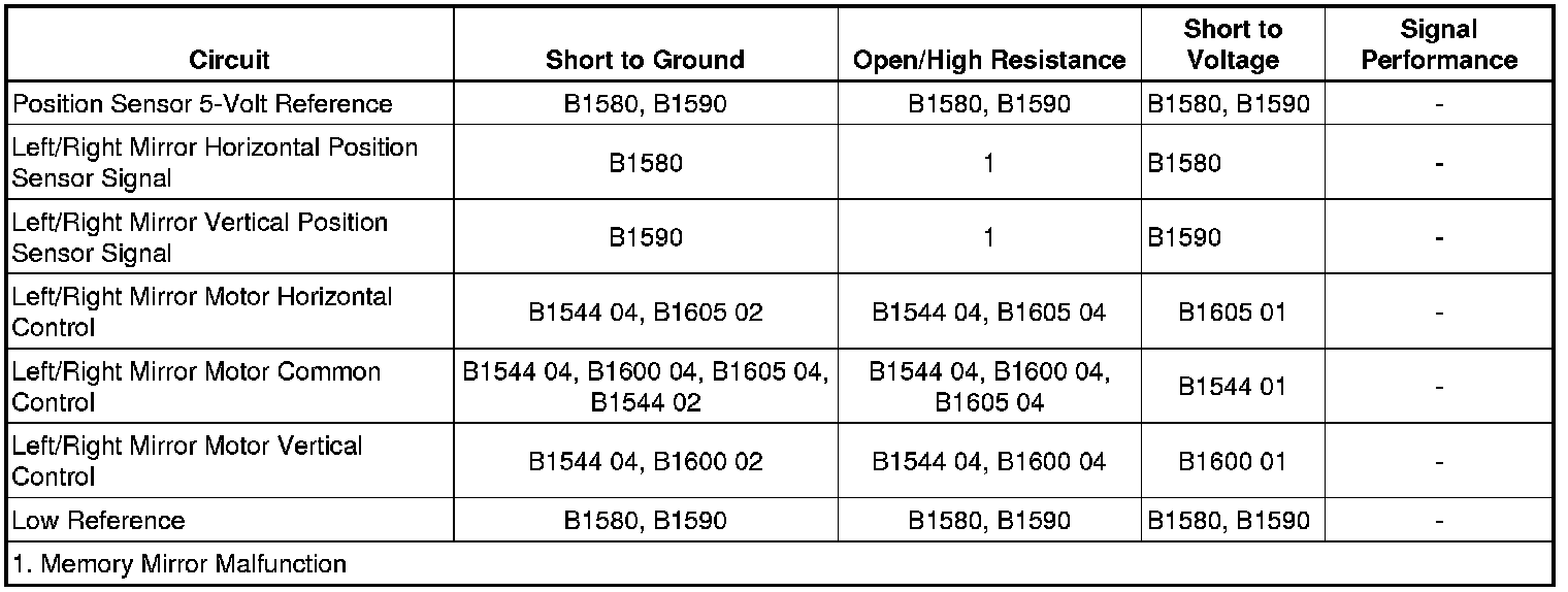 • If a mirror does not adjust to the stored memory setting refer to, Mirror Position Sensor Circuit Test.