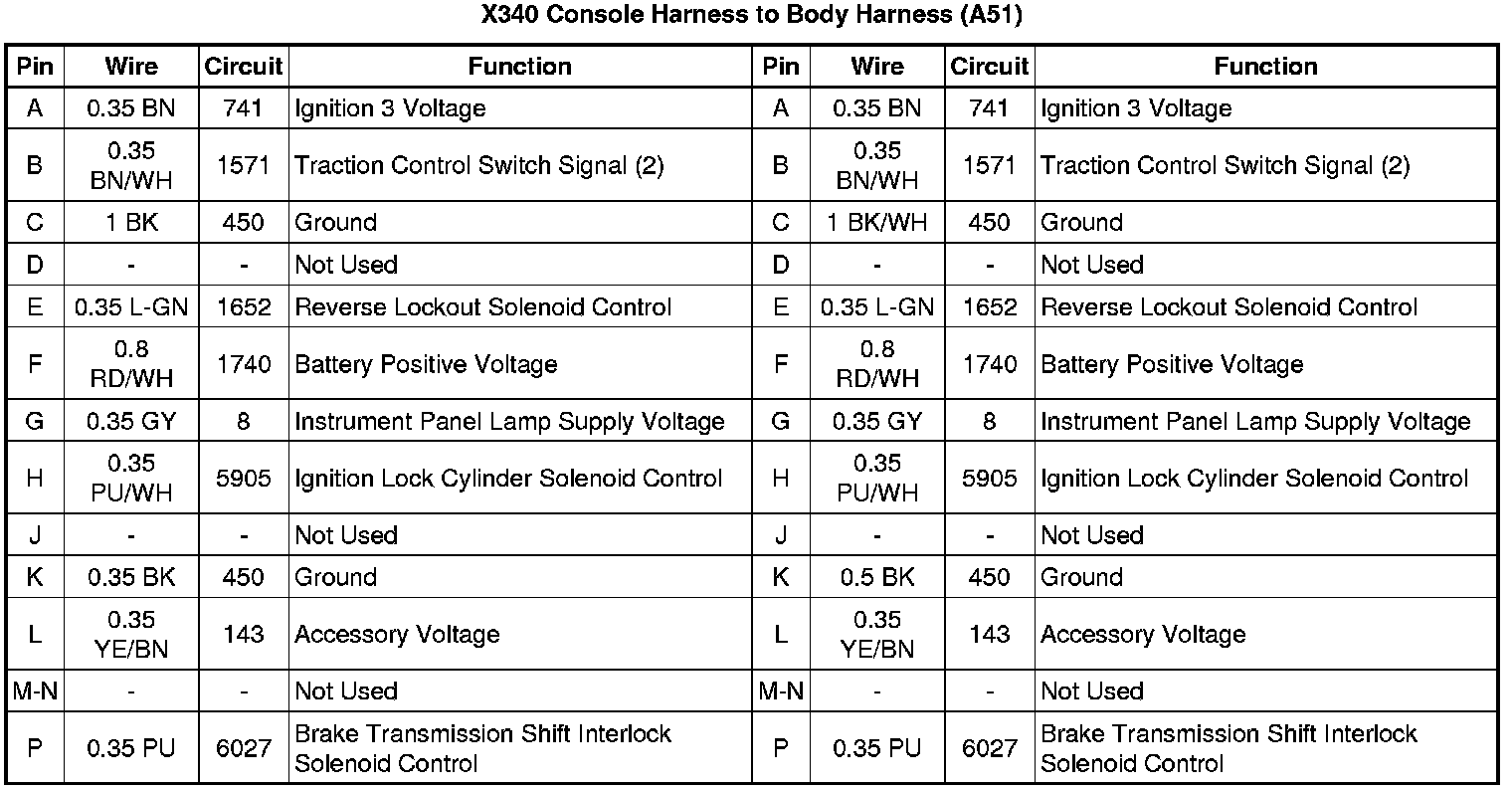 X340 Console Harness to Body Harness (A51)