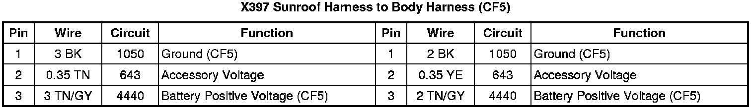X397 Sunroof Harness to Body Harness (CF5)