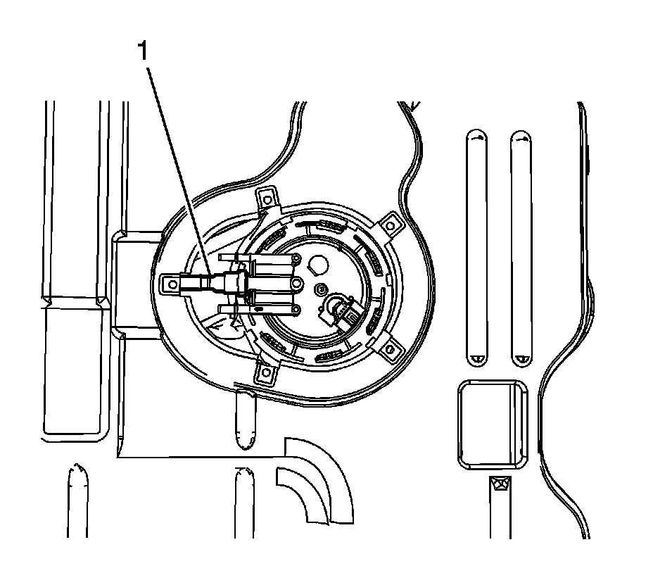 6. Disconnect the evaporative emission (EVAP) pipe quick connect fitting (1) from the sender. Refer to Plastic Collar Quick Connect Fitting Service (Plastic Collar Quick Connect Fitting Service).