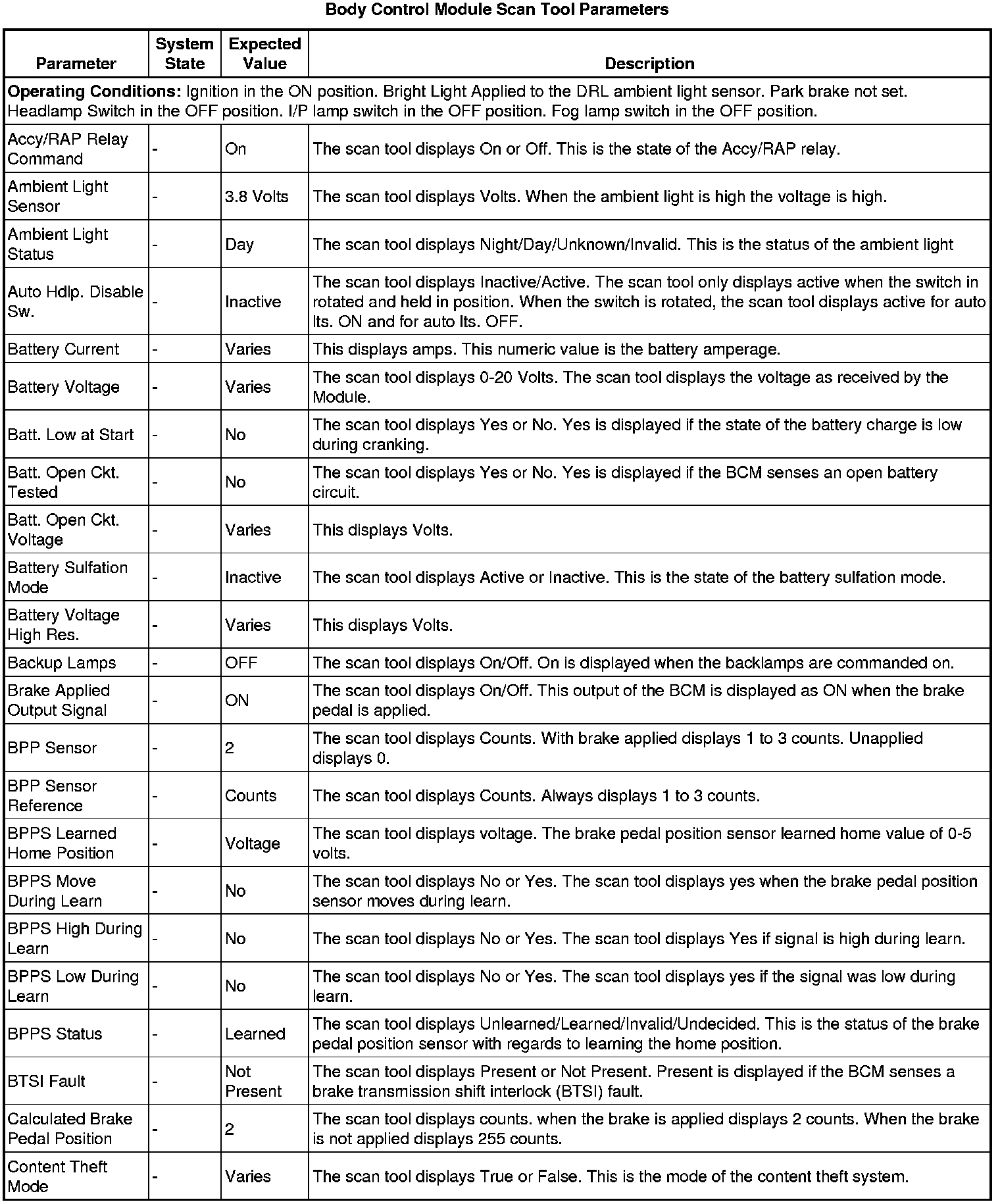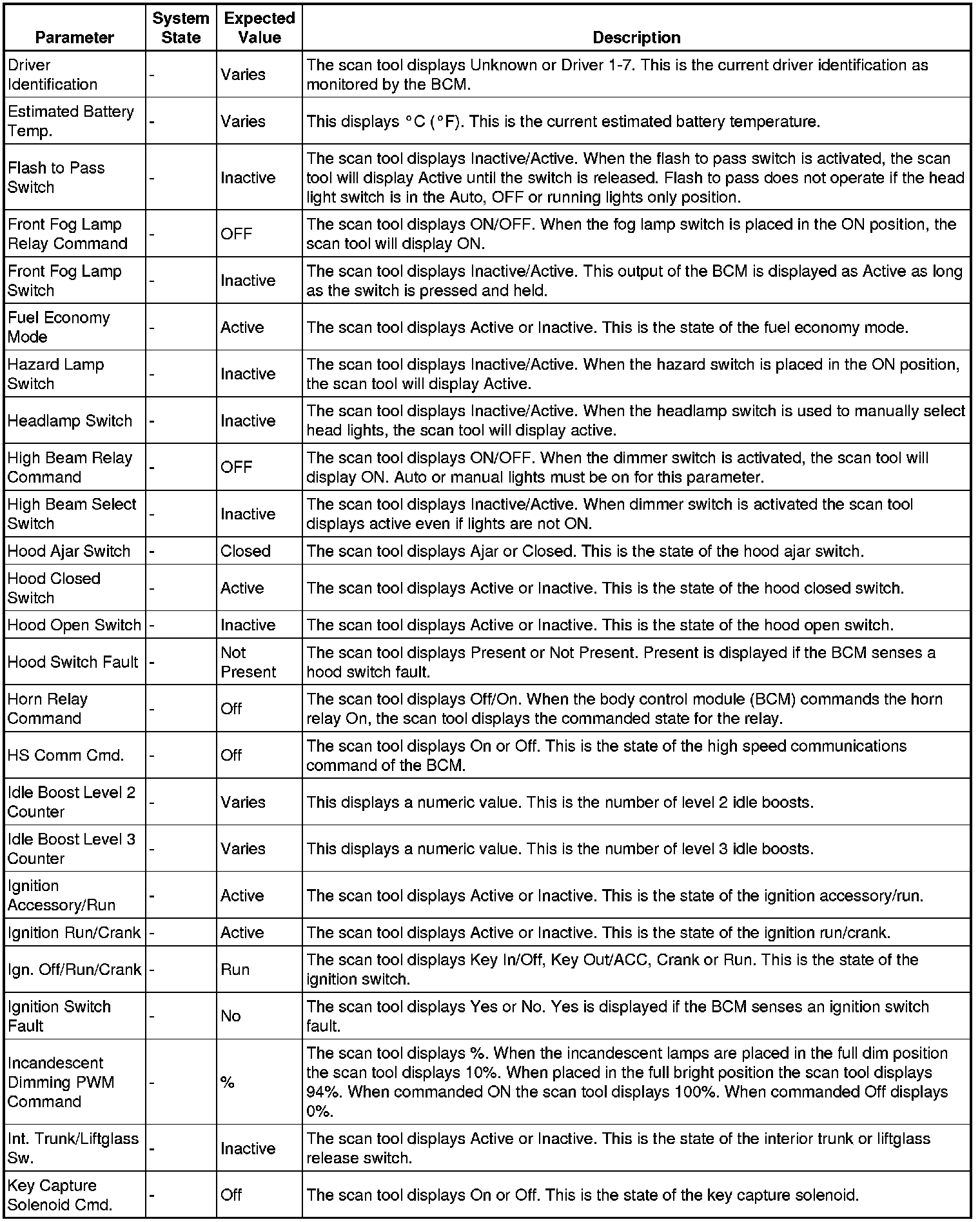 Body Control Module Scan Tool Information