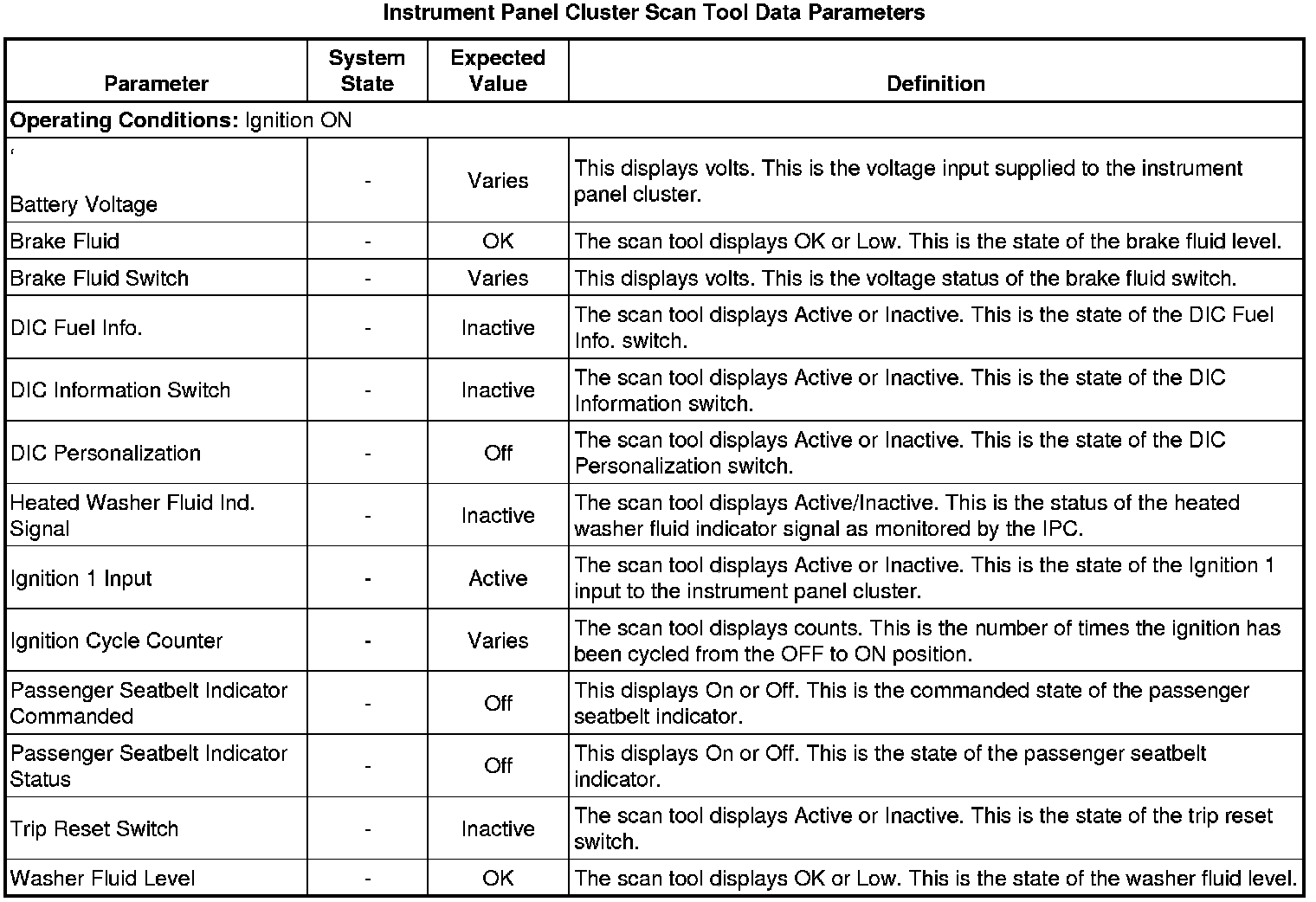 Instrument Cluster Scan Tool Information