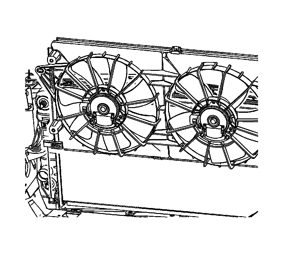 Note: The bolts retaining the cooling fan to the radiator end tanks are a special length and should be the ONLY bolts used upon reinstallation. The use of longer bolts will damage the radiator end tanks.