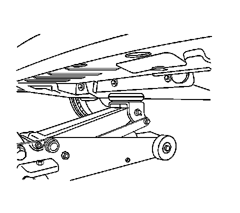 Note: The floor jack pad must not contact the rocker panel or floor pan.