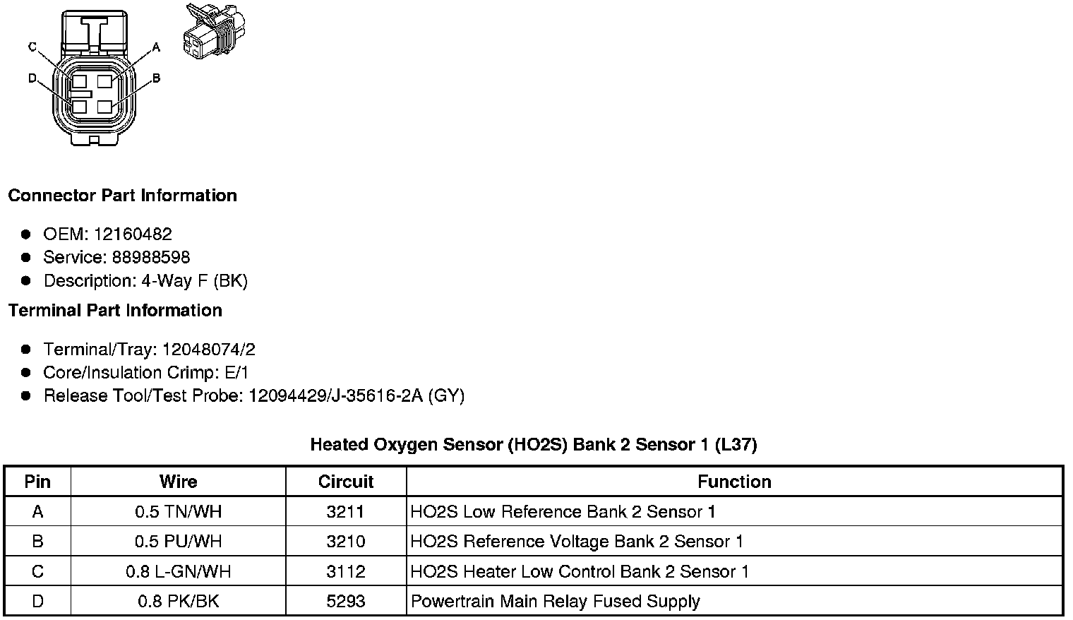 Heated Oxygen Sensor (HO2S) Bank 2 Sensor 1 (L37)