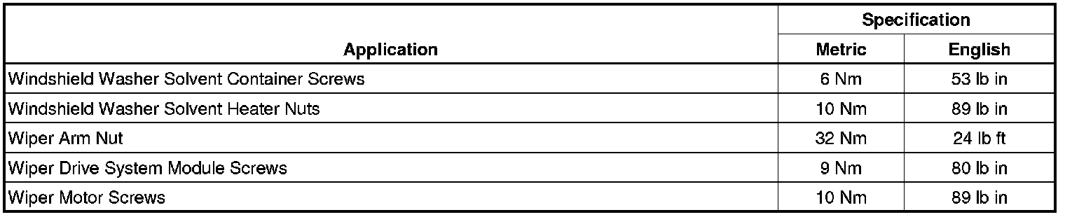 Wiper and Washer Systems: Specifications