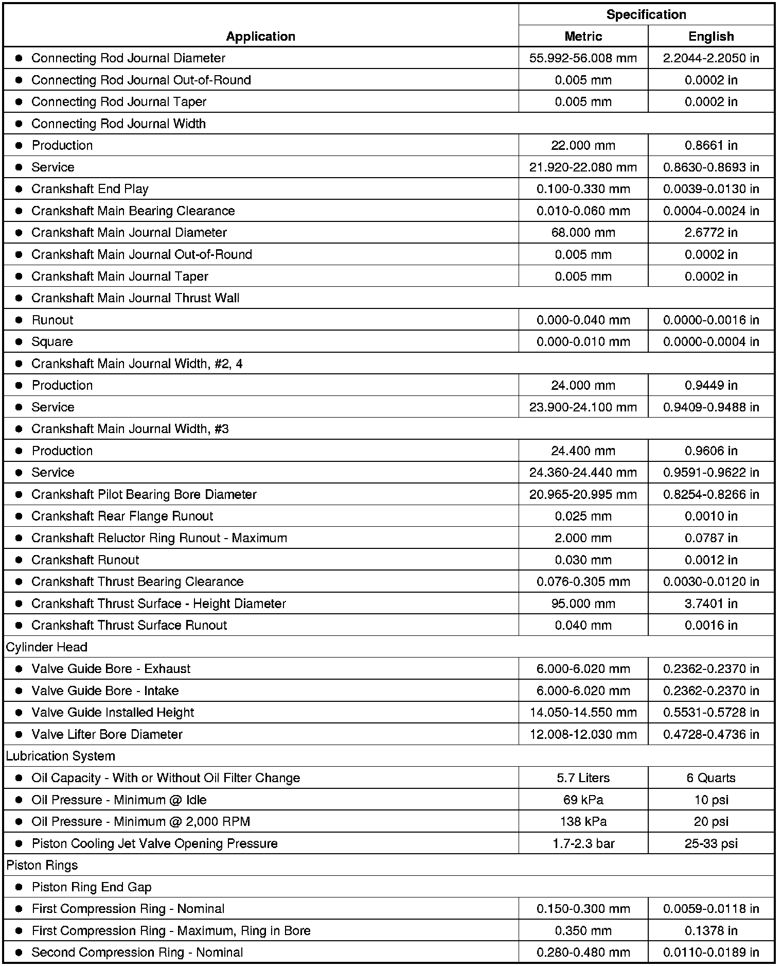 Engine Mechanical Specifications