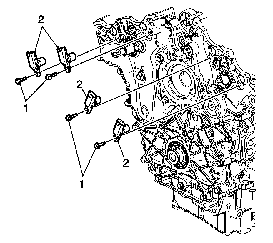 12. Install the camshaft position sensor bolts (1) and tighten to 10 Nm (89 lb in).