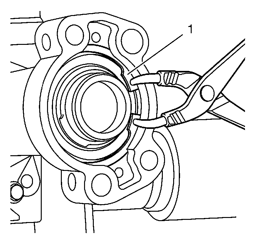 3. Install the transfer case intermediate shaft retaining ring (1).