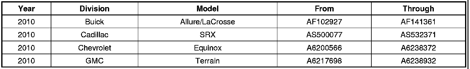 A list of involved vehicles currently in dealer inventory is available on the "Service Update Bulletin Information" link under the "Service" tab in GM GlobalConnect (US), or attached to the Dealer Communication (Canada), used to release this bulletin. Customer vehicles that return for service, for any reason, and are still covered under the vehicle's base warranty, and are within the VIN breakpoints provided below, should be checked for vehicle eligibility in the appropriate system listed below.