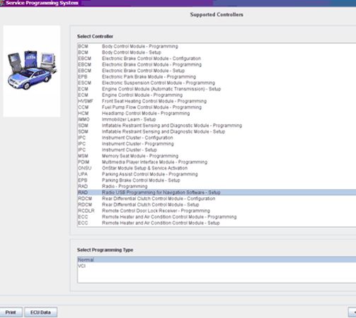 6. Select: RAD - "Radio USB Programming for Navigation Software - Setup", from the Supported Controllers screen. Refer to SI and SPS for programming instructions, if required.