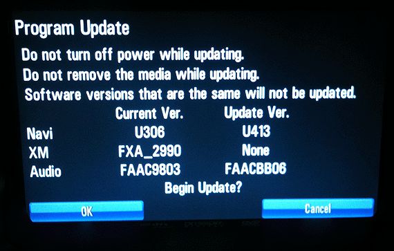The navigation radio will be returned to factory default value during this upgrade.
