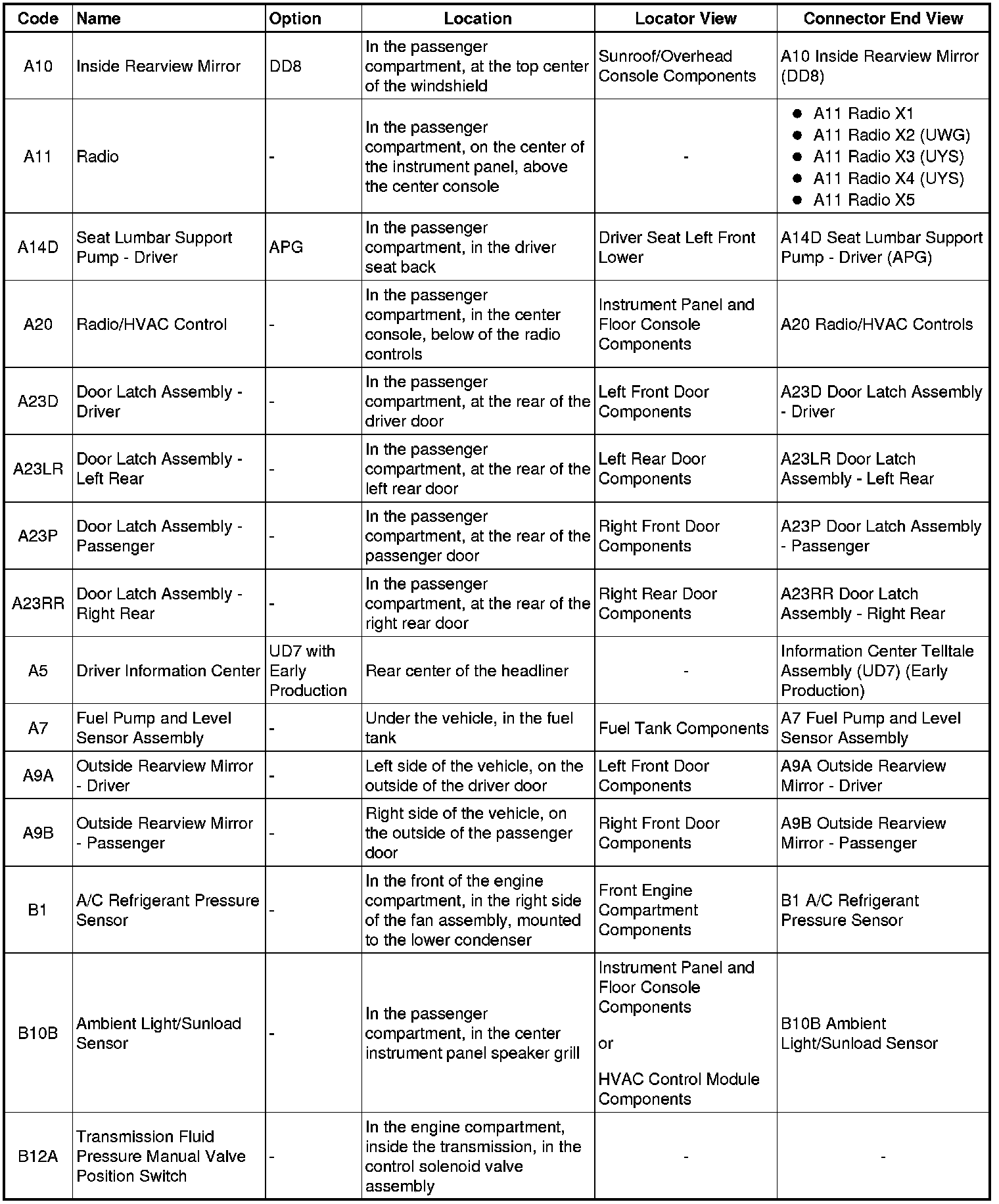 Master Electrical Component ListA10 - B12: