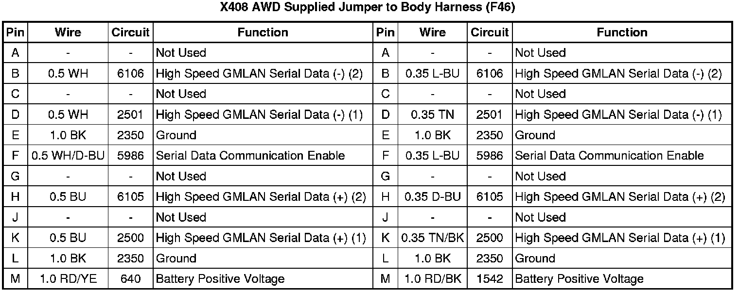 X408 AWD Supplied Jumper to Body Harness (F46)