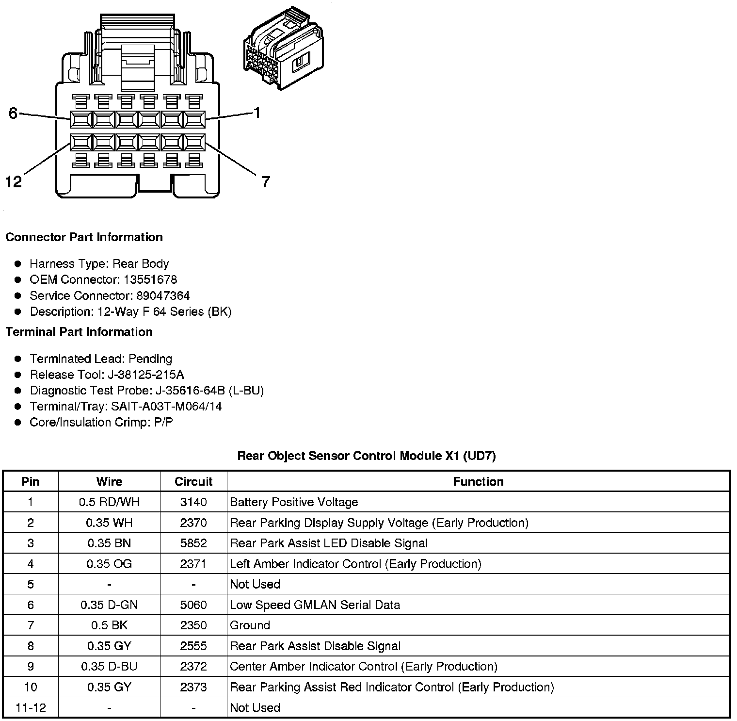 Rear Object Sensor Control Module X1 (UD7)