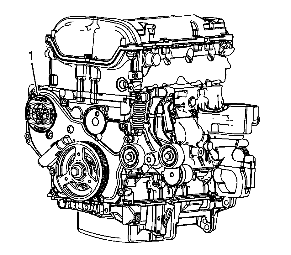 Note: Be sure to remove both water pump bolts (1) from the front of the engine block.