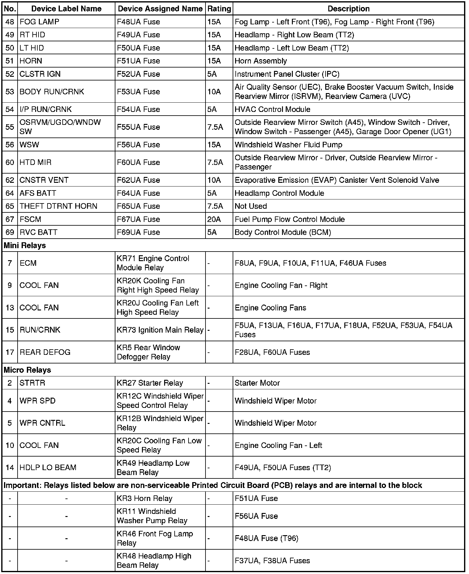 X50A Fuse Block - Underhood - Label