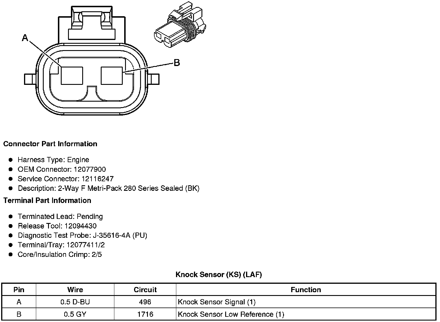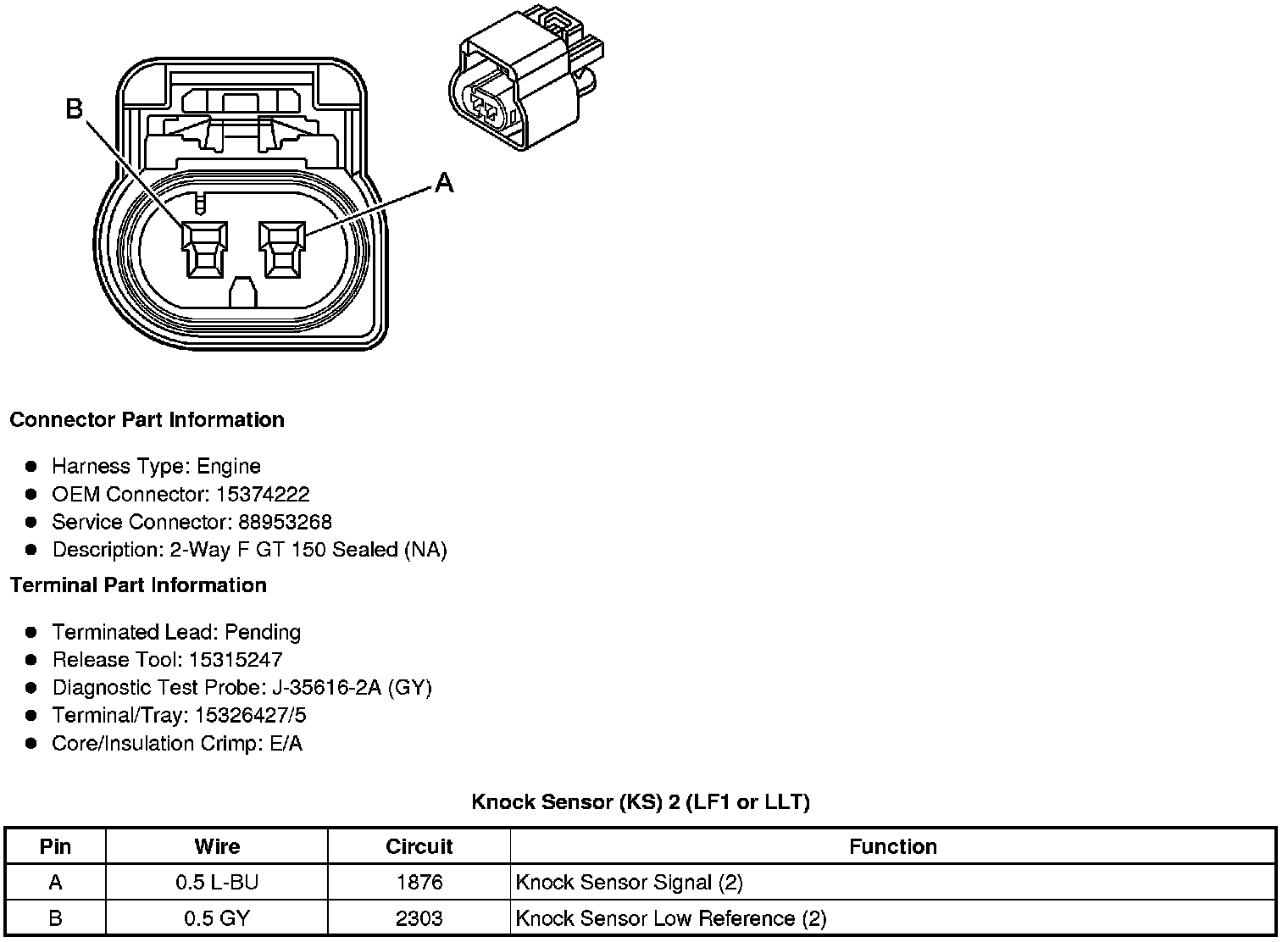B68A Knock Sensor (KS) 1 (LF1 or LLT)