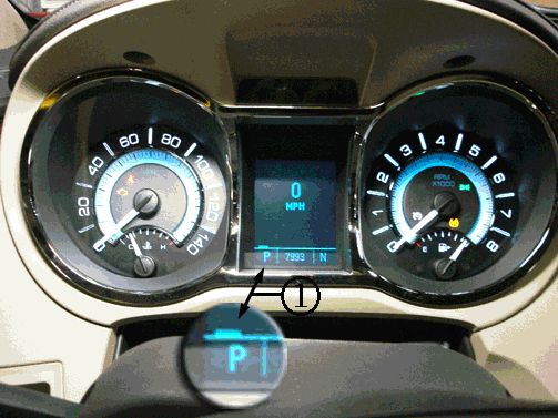 8. Verify that the transmission control lever is functioning properly by placing the transmission control lever in (P) Park, (R) Reverse, (N) Neutral, and (D) Drive. The IP display should display the appropriate transmission control lever selection.