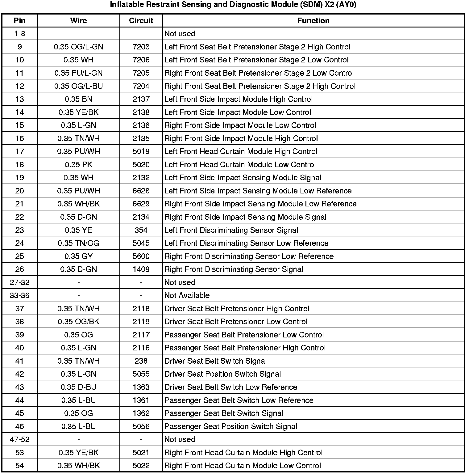 Inflatable Restraint Sensing and Diagnostic Module (SDM) X2 (AY0)