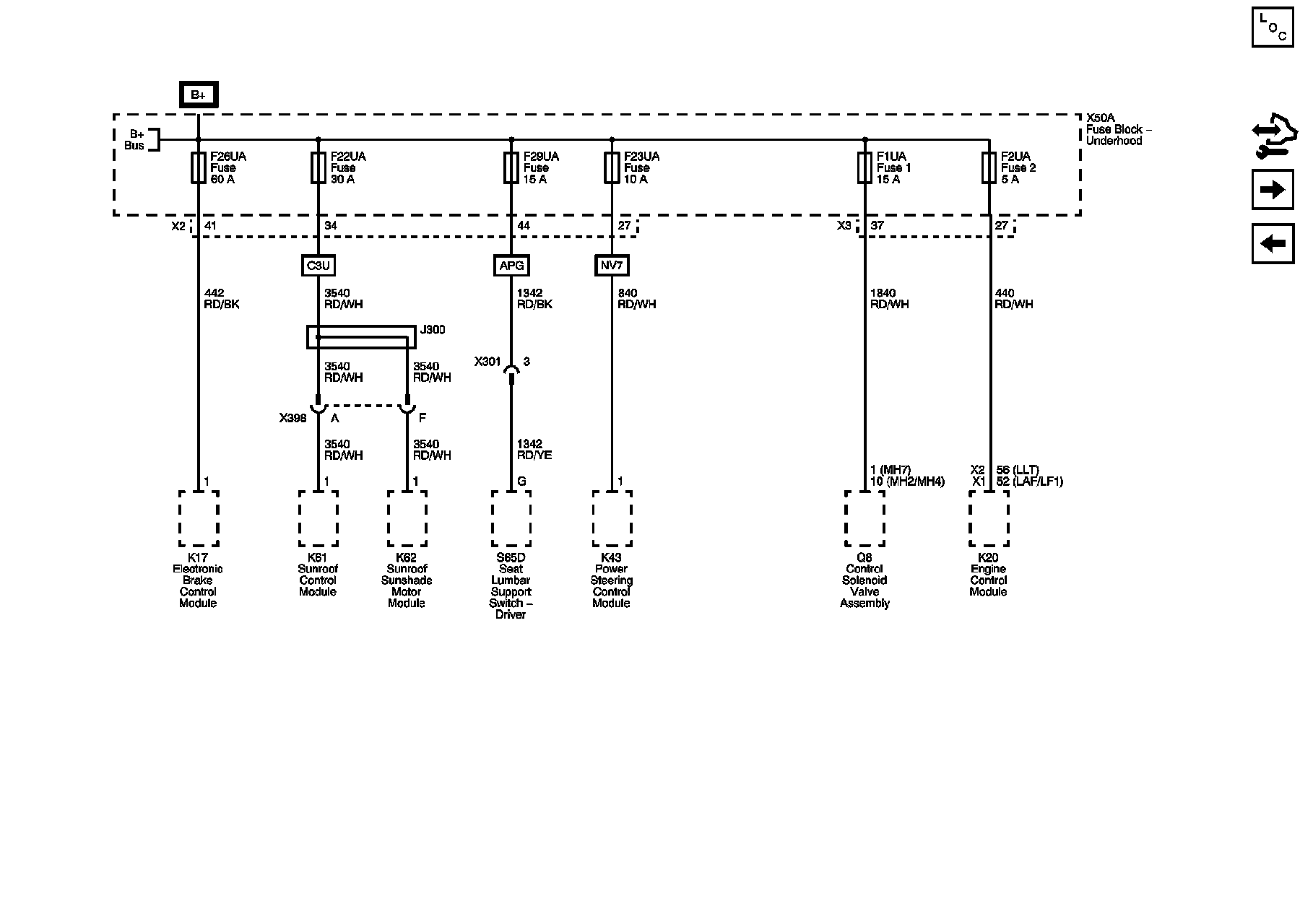 ABS PUMP, ECM BATT, LUM LT, S/ROOF, TCM BATT, and VARIABLE EFFORT STEERING Fuses