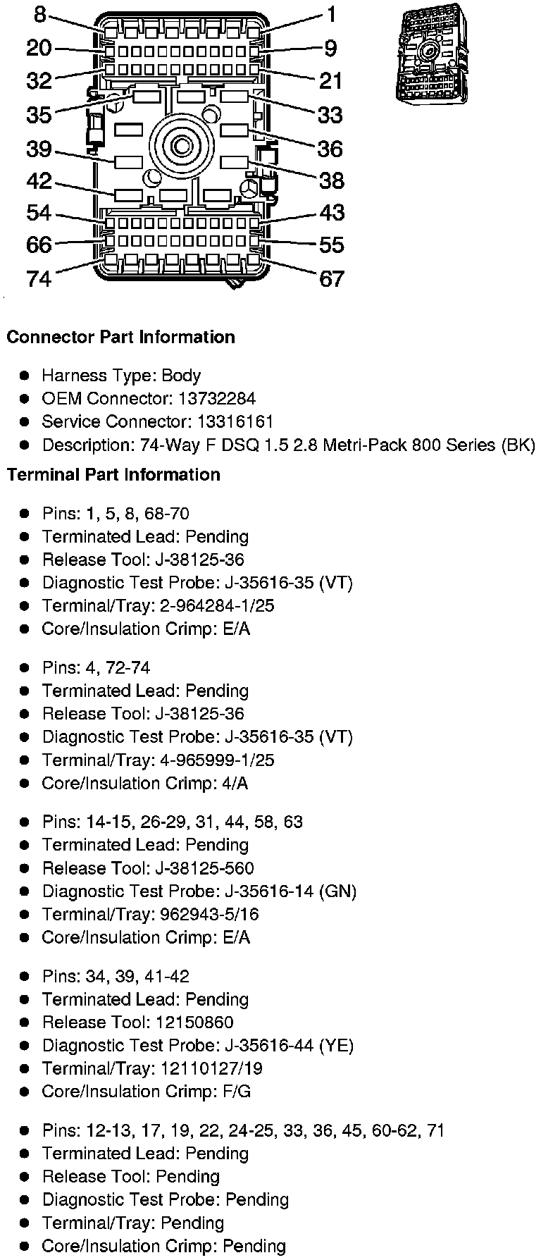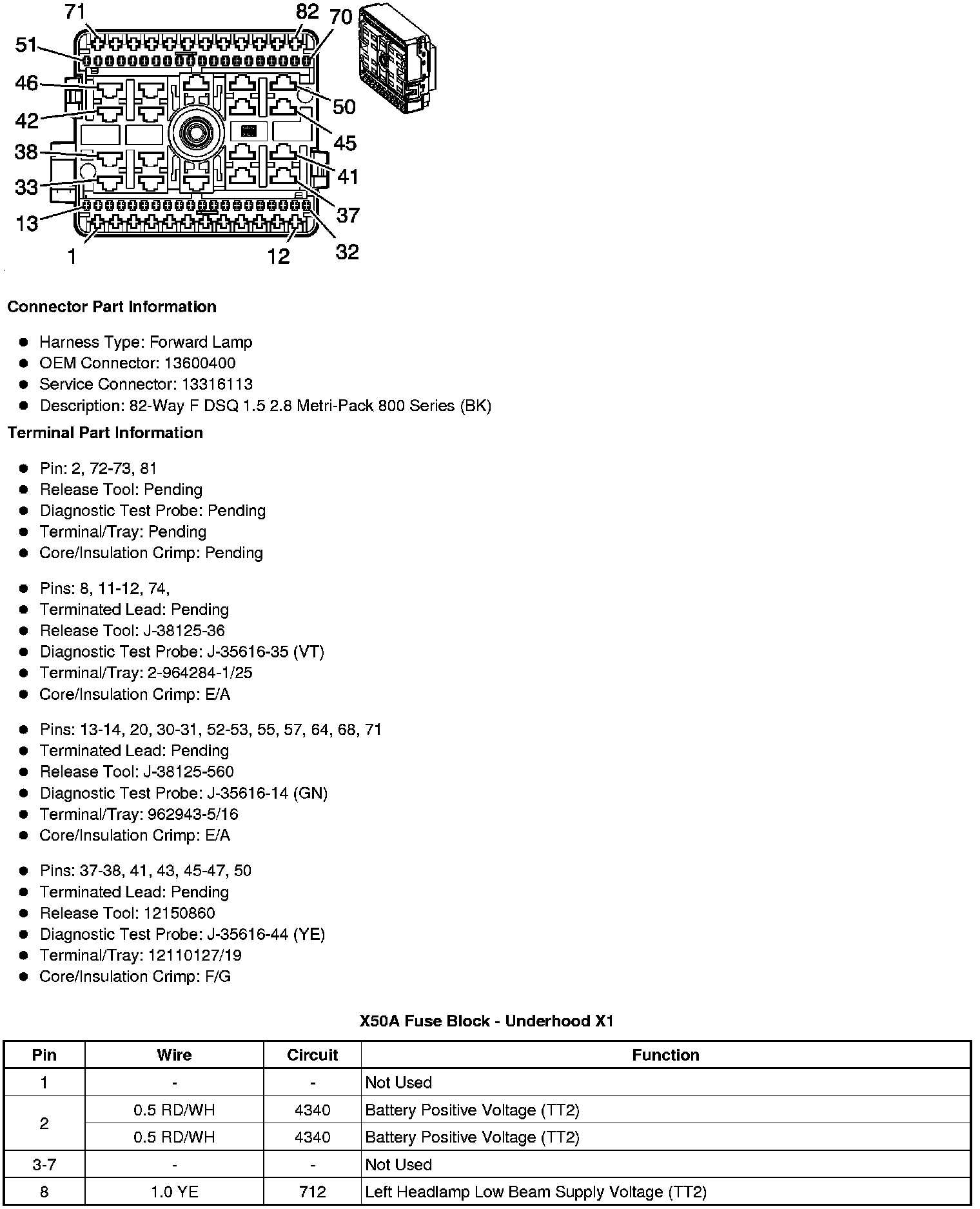 X50A Fuse Block - Underhood - Top View