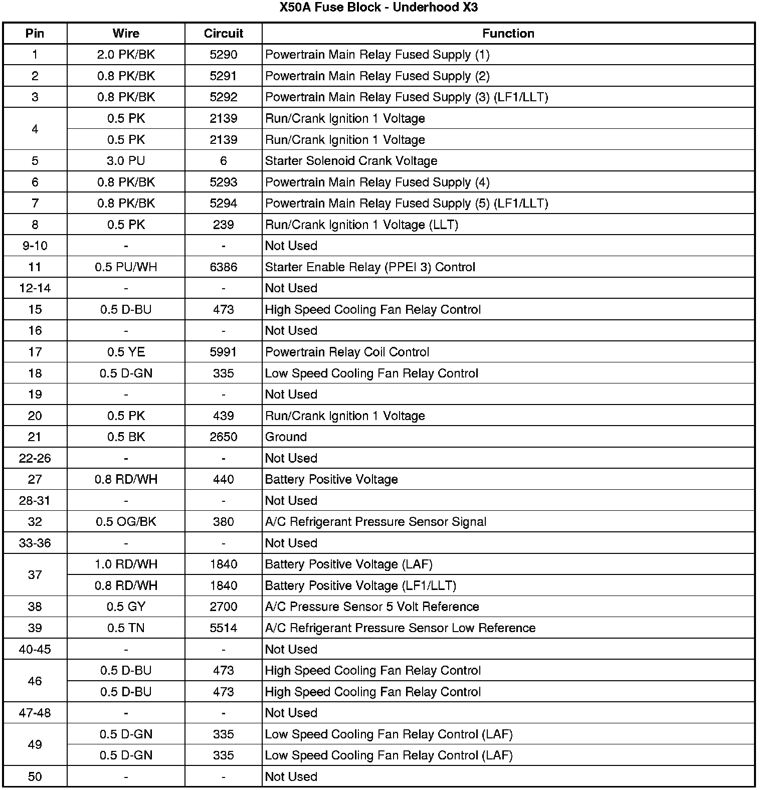 X50A Fuse Block - Underhood X3