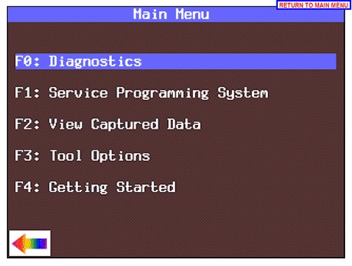3. From the Main Menu select F0: Diagnostics.