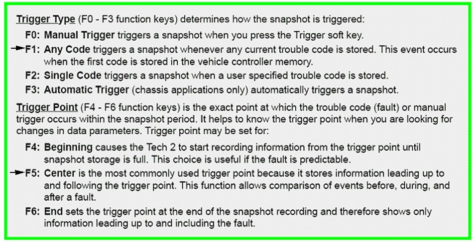 - When the fault occurs, the Tech 2(R) will automatically start recording if the preferred settings (F1 and F5) are selected.
