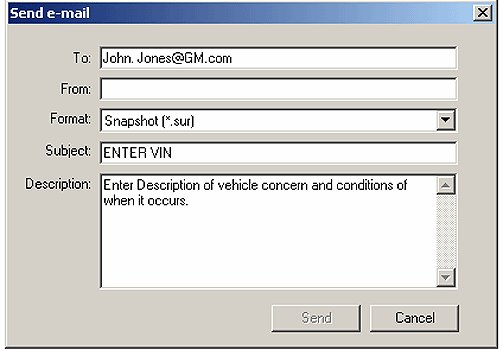 5. After selecting Send to e-mail, a dialog box like the one shown in Figure 12 will be displayed. Fill in the information as requested and then click send. Include the VIN in the subject line.