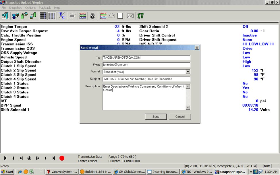 - Please be sure to identify the snapshot by placing the TAC Case Number, the last eight digits of the VIN and the type of data (i.e. engine or transmission) in the subject line of your e-mail. The email Subject Line MUST contain the TAC case number and last 8 digits of the VIN or their email can not be processed and will be deleted.