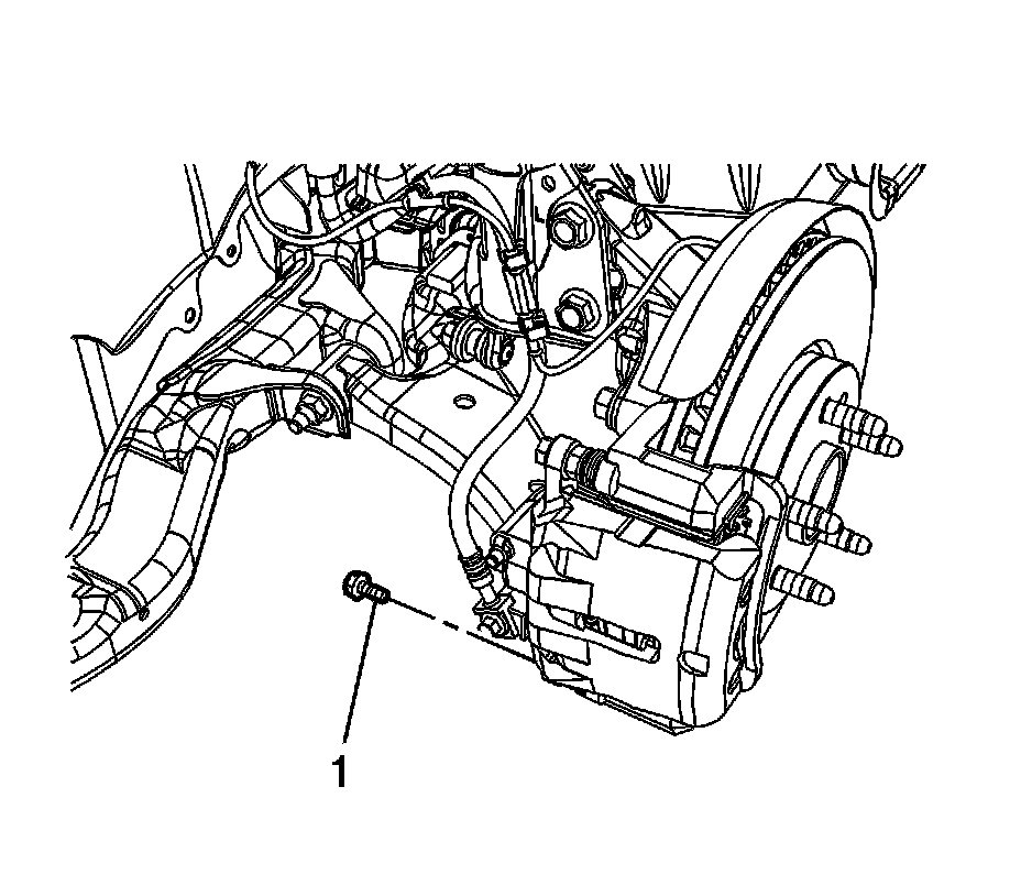 Caution: Support the brake caliper with heavy mechanic wire, or equivalent, whenever it is separated from its mount and the hydraulic flexible brake hose is still connected. Failure to support the caliper in this manner will cause the flexible brake hose to bear the weight of the caliper, which may cause damage to the brake hose and in turn may cause a brake fluid leak.