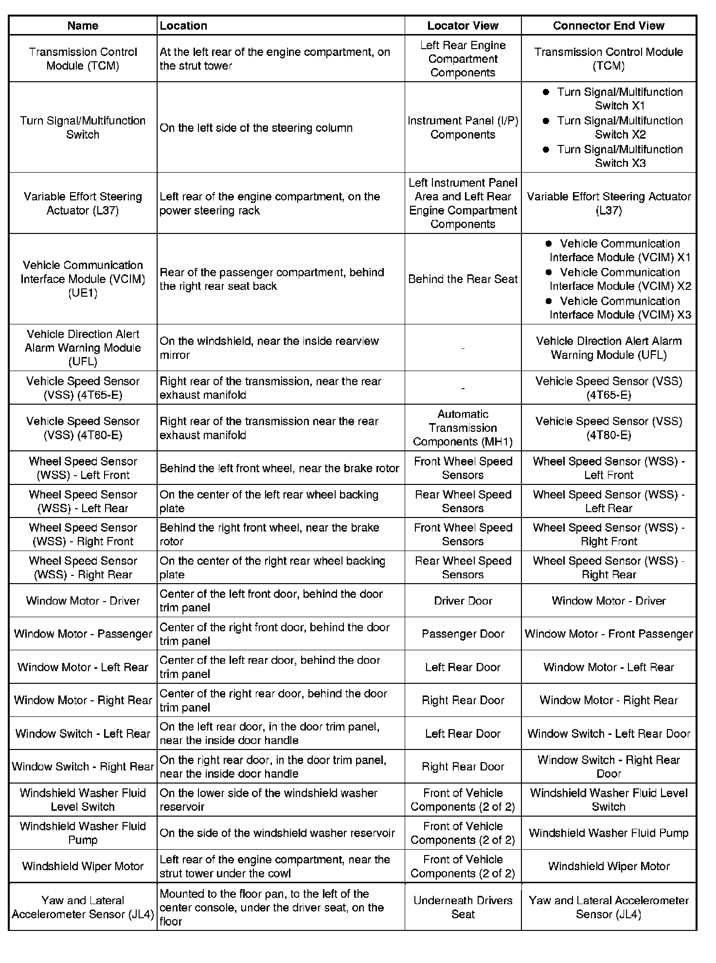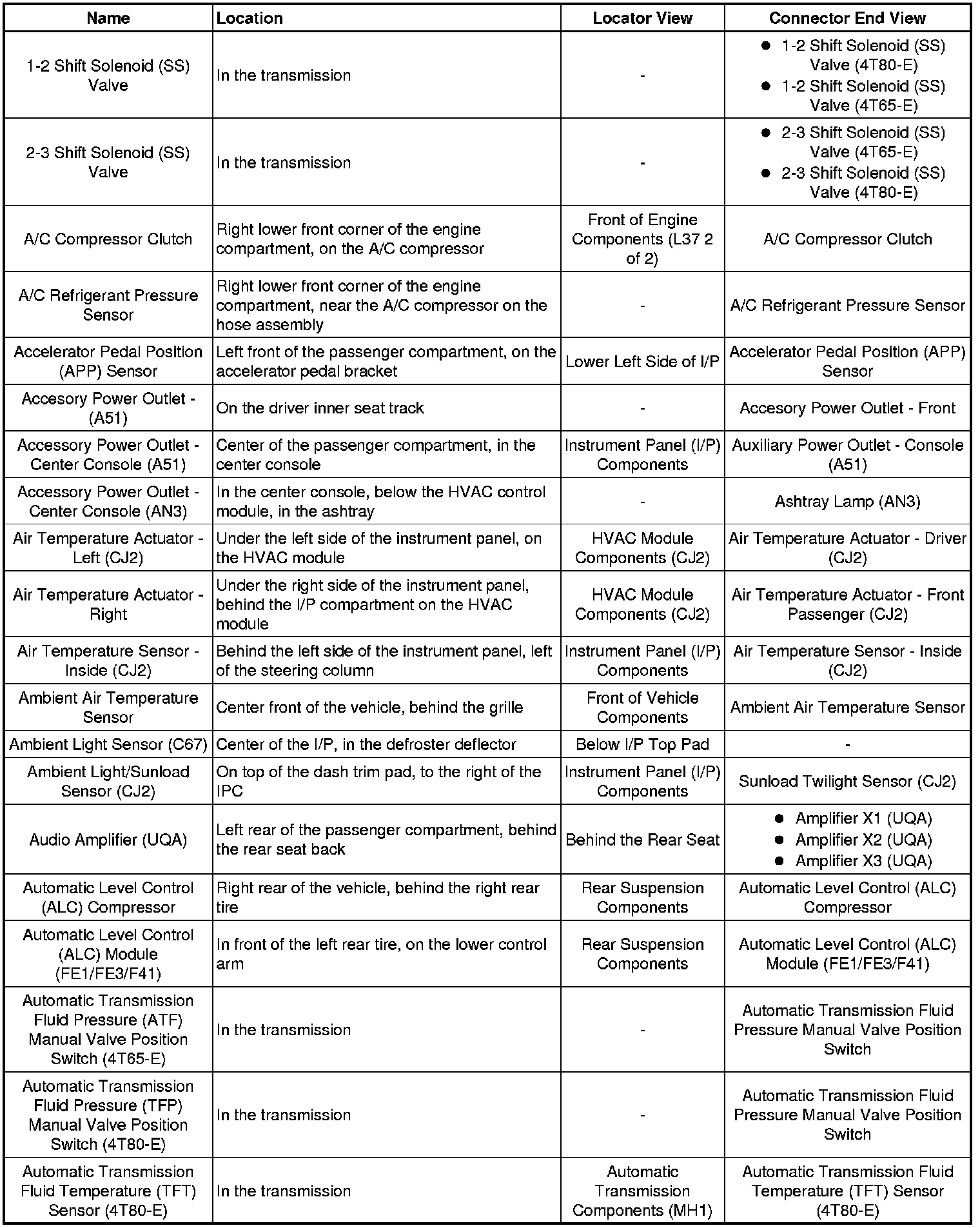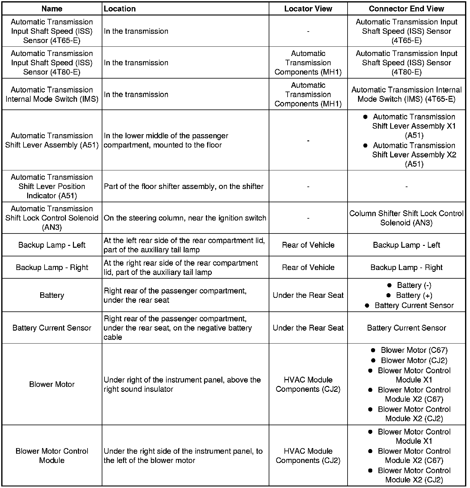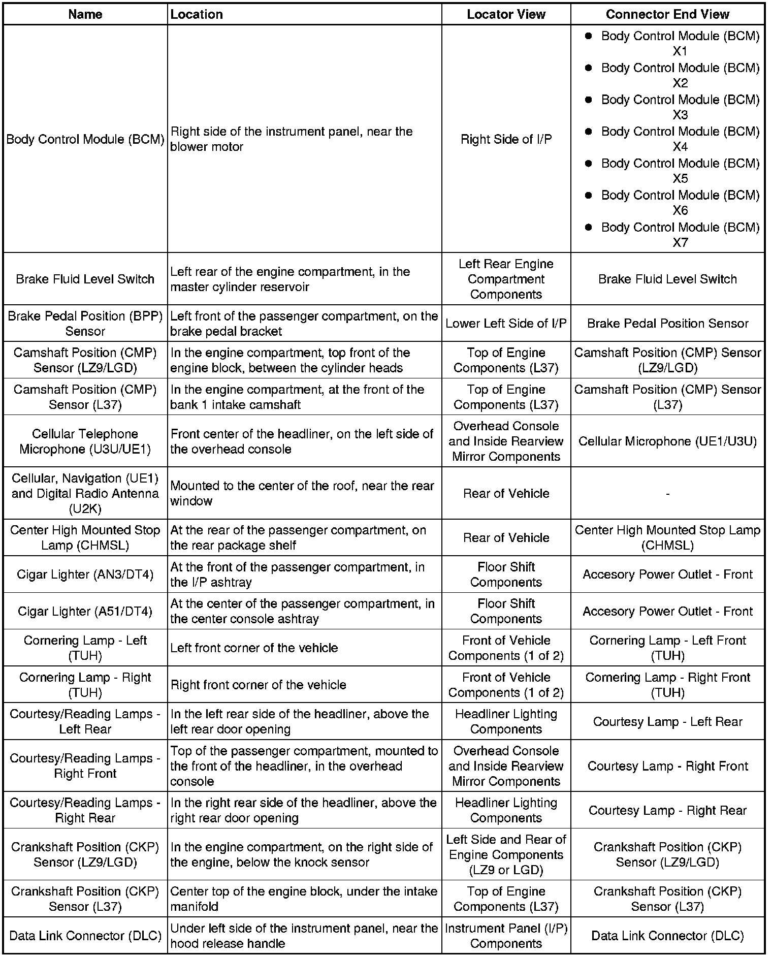 Master Electrical Component List