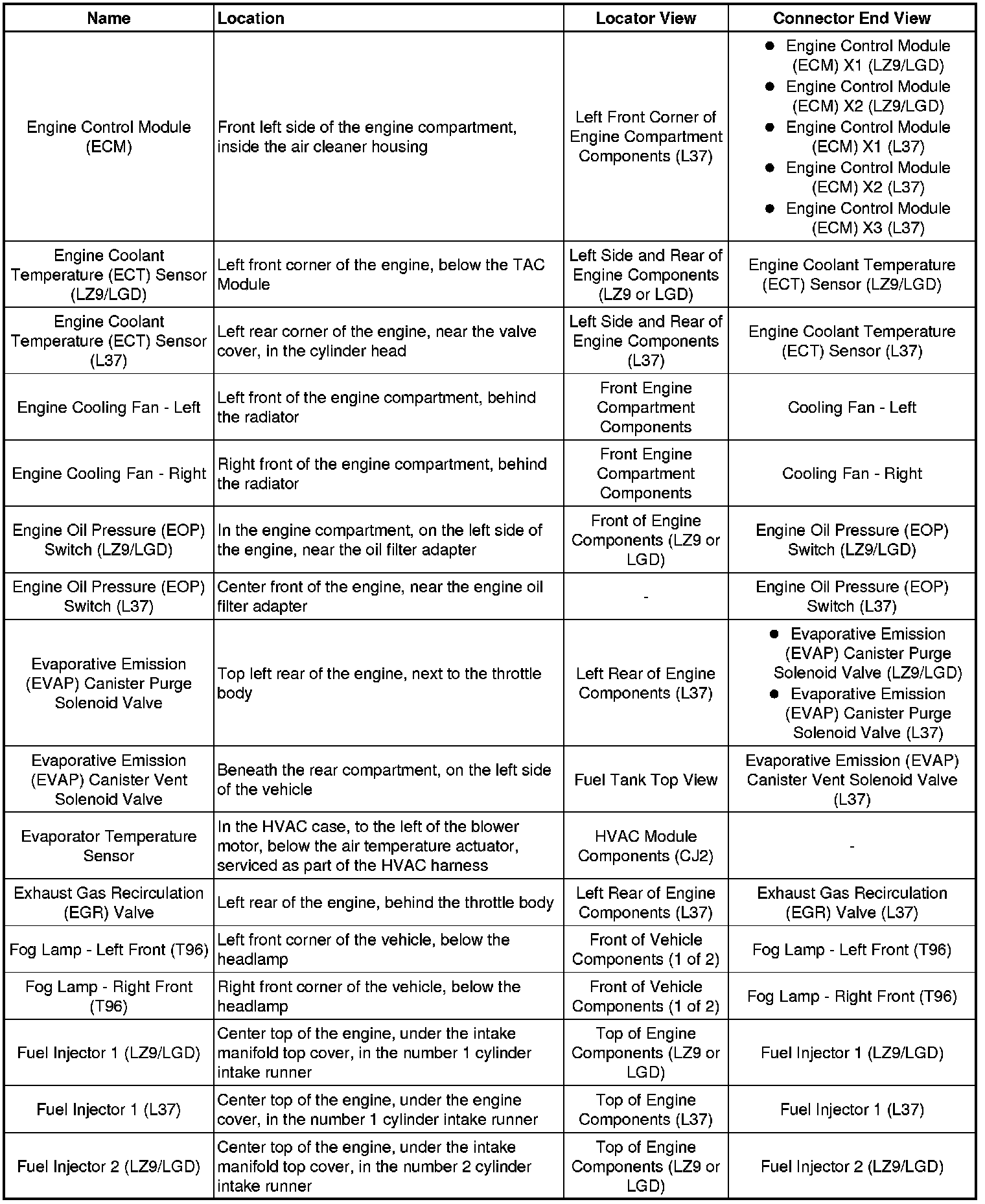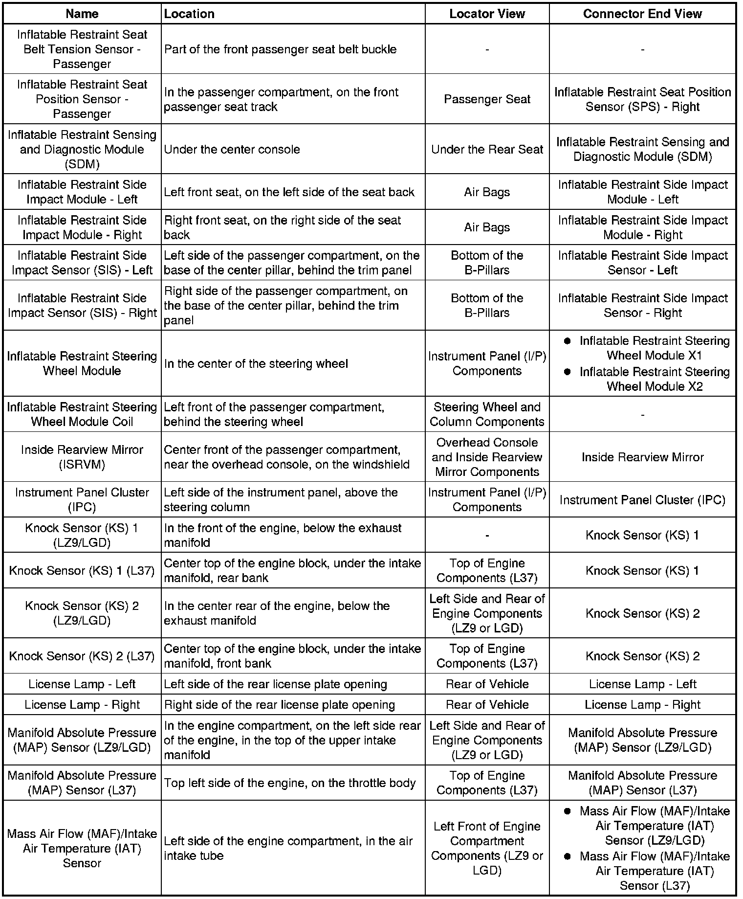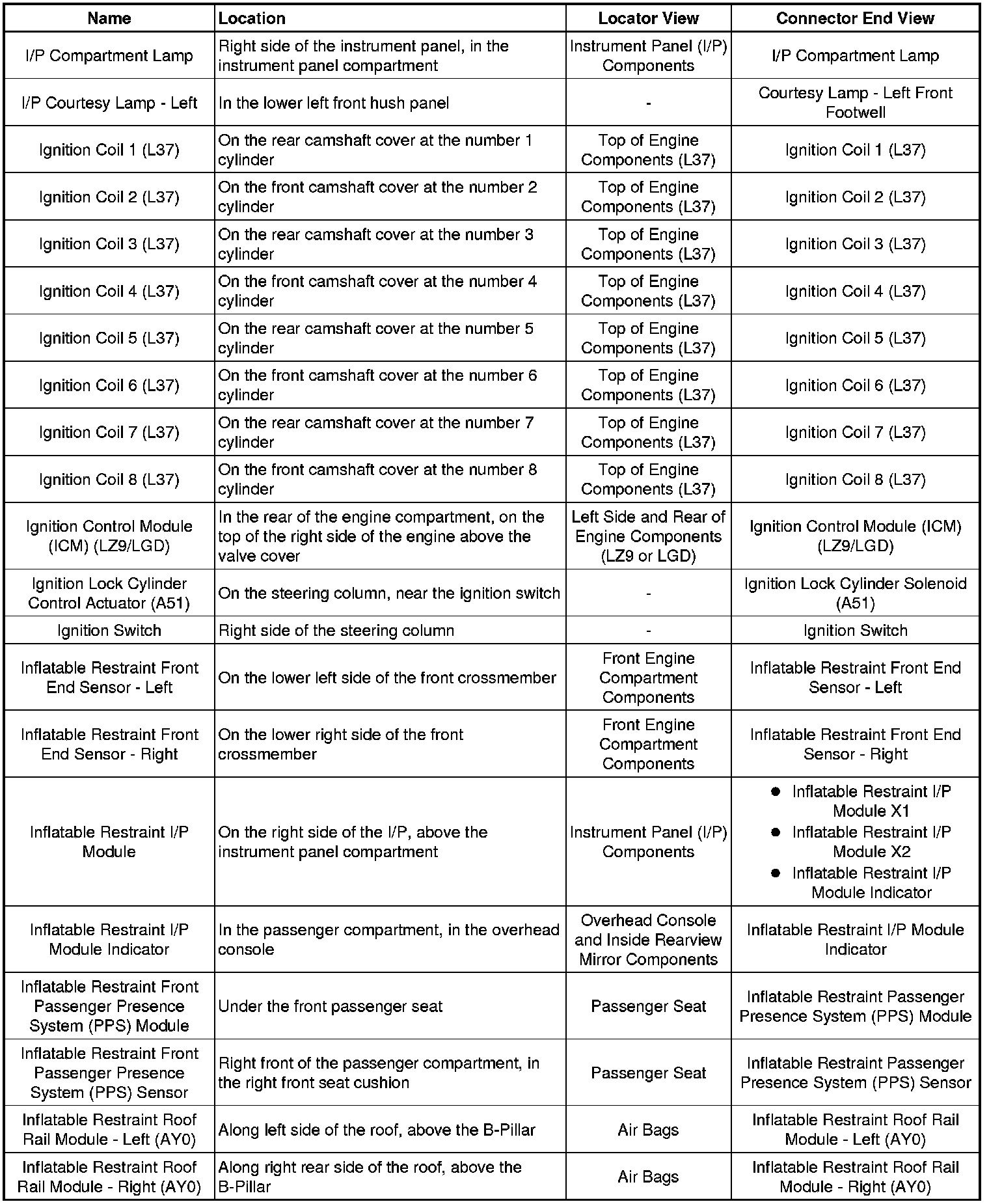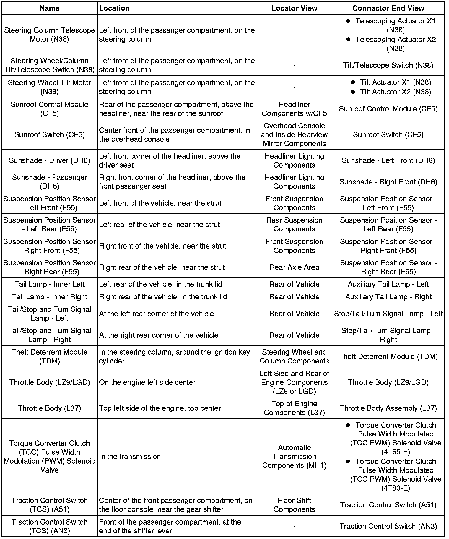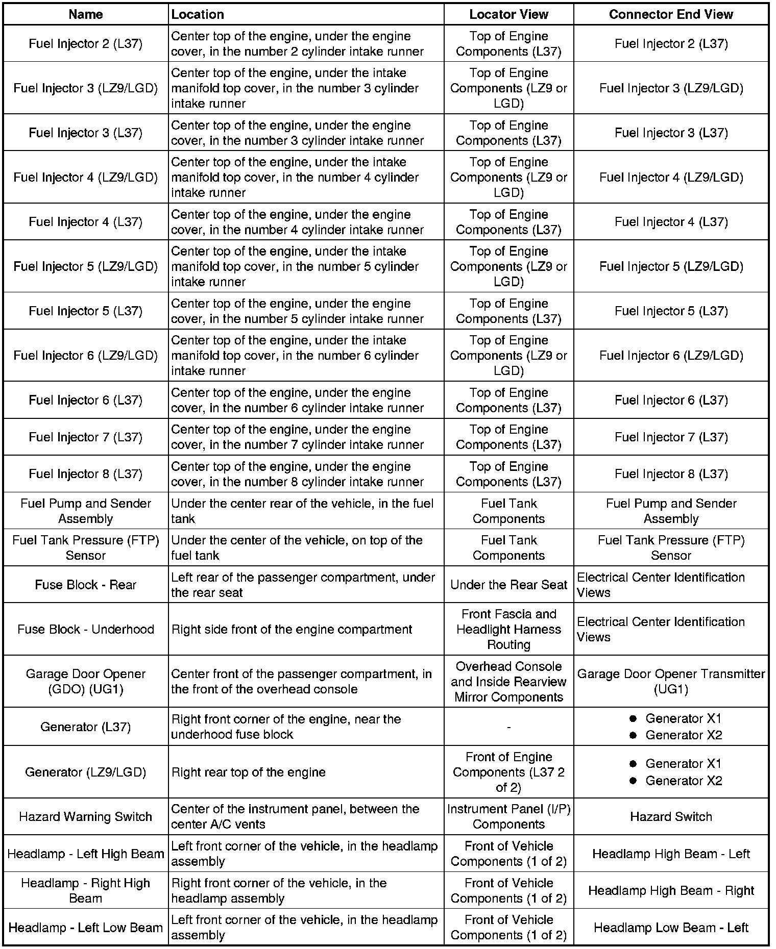Master Electrical Component List