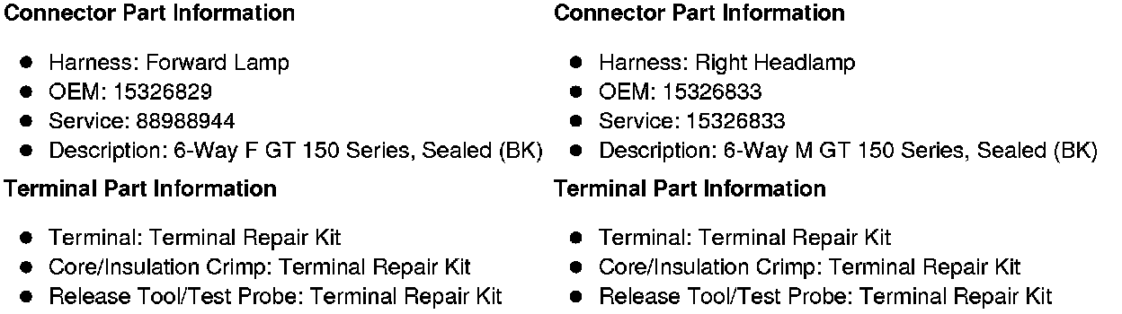 X114 Forward Lamp Harness to Right Front Head Lamp Assembly Harness