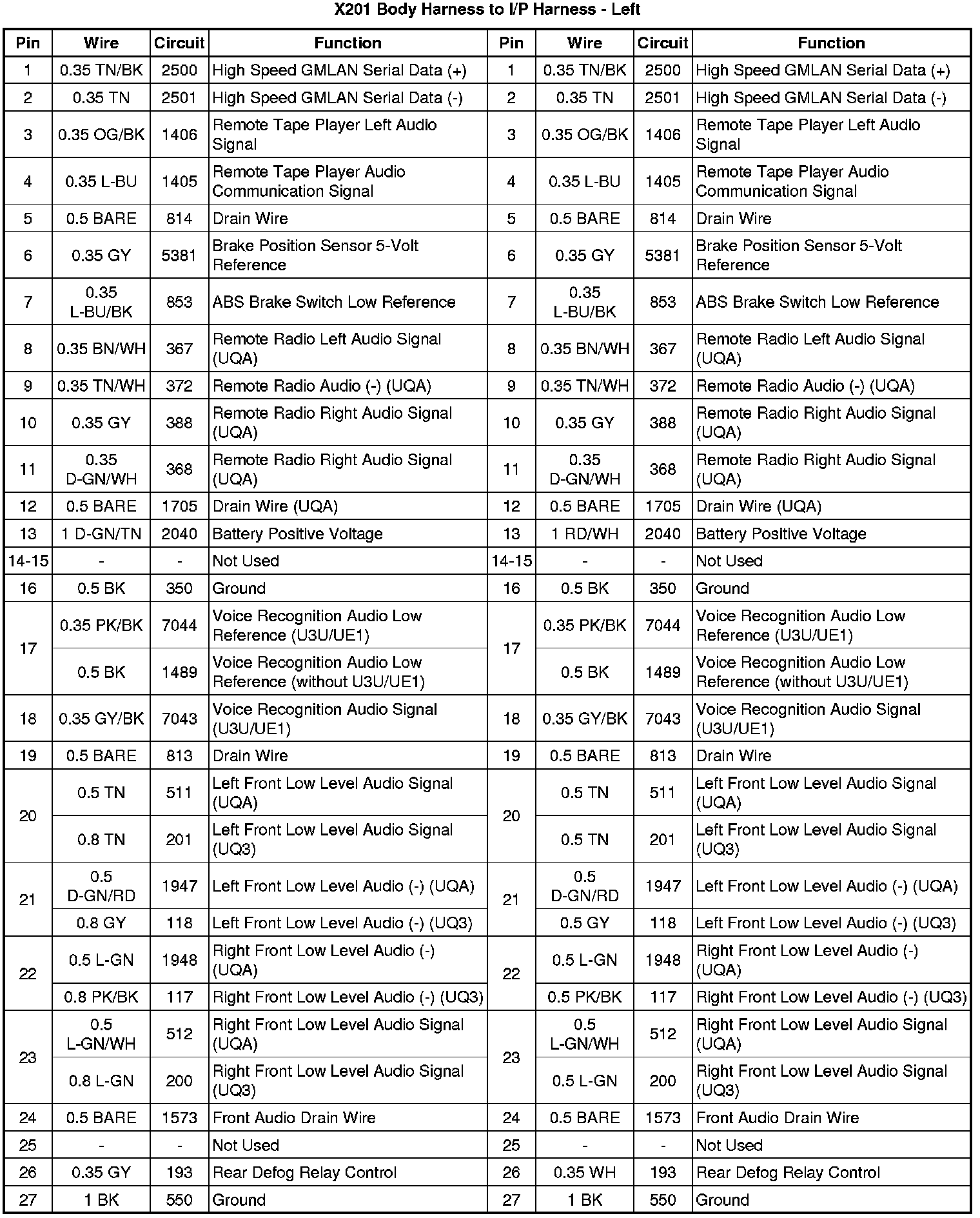 X201 Body Harness to I/P Harness - Left