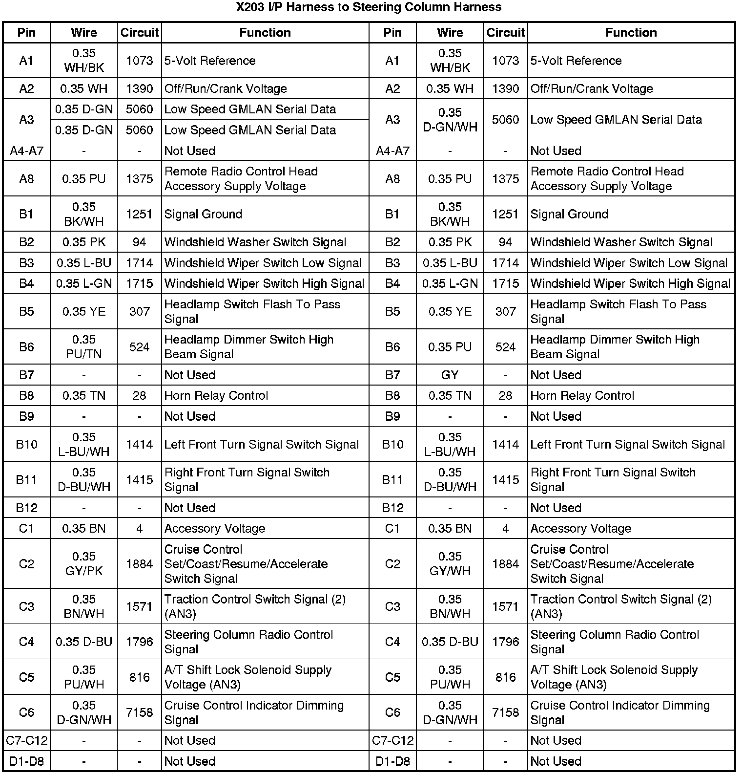 X203 I/P Harness to Steering Column Harness