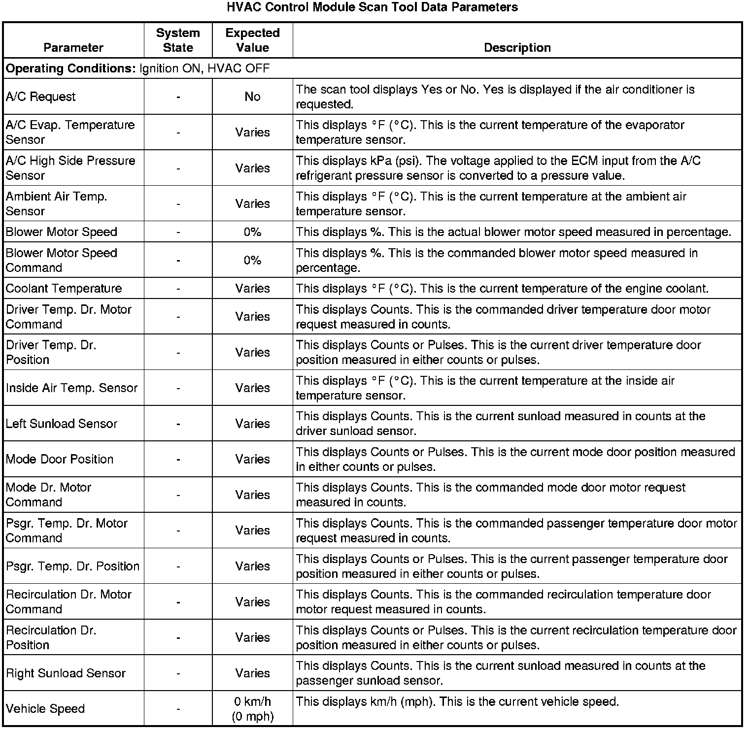 Heating, Ventilation and Air Conditioning Control Module Scan Tool Information