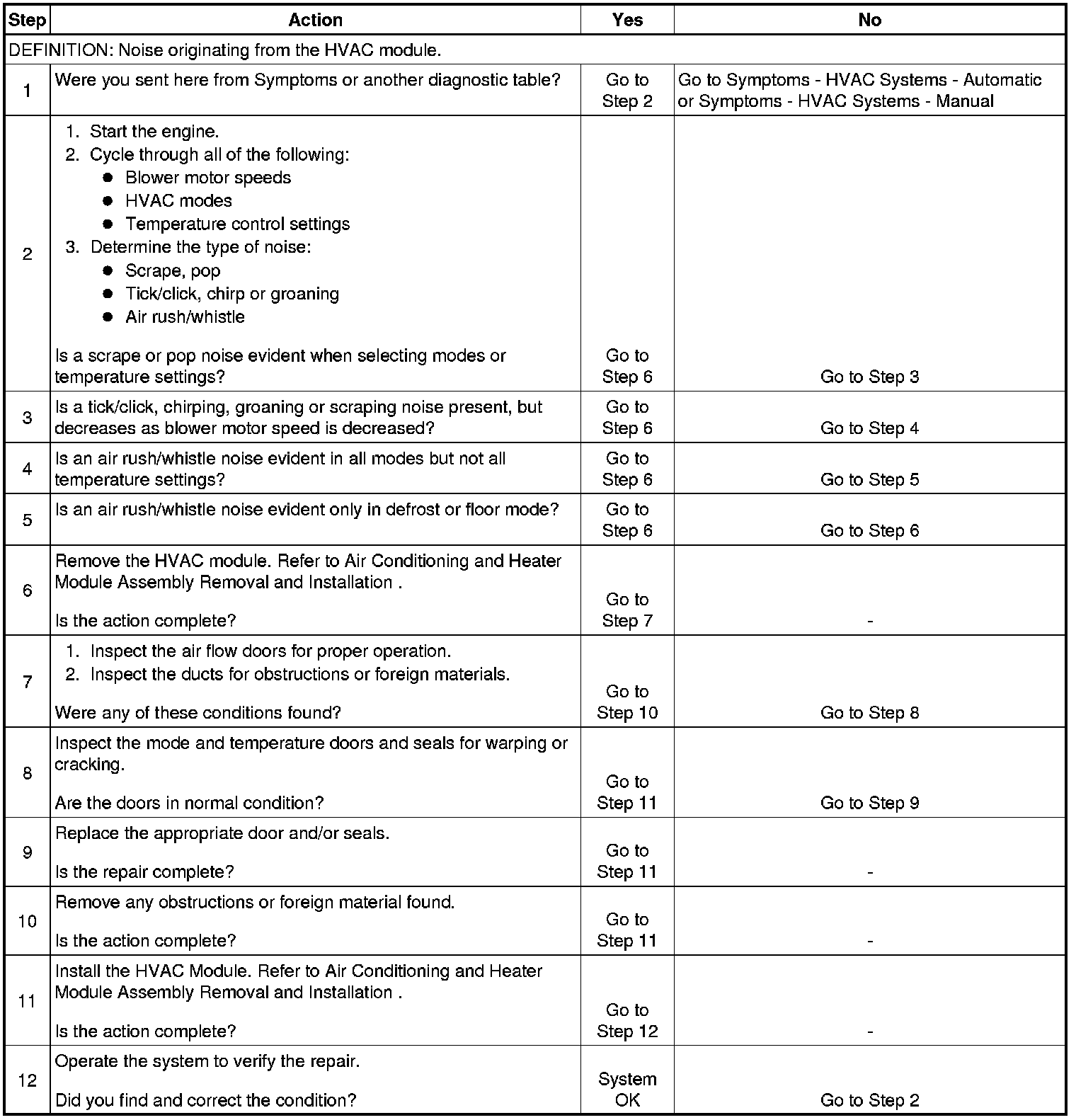 Noise Diagnosis - HVAC Module