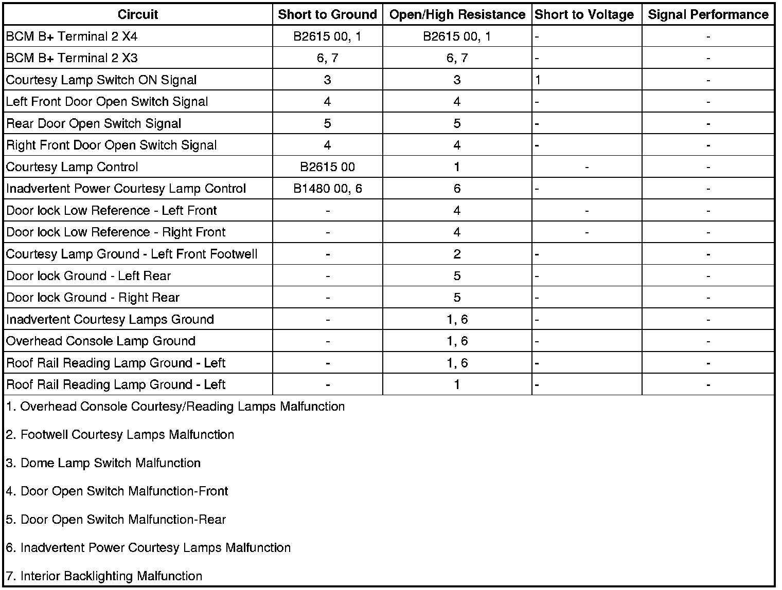 Inadvertent Power Courtesy Lamps Malfunction