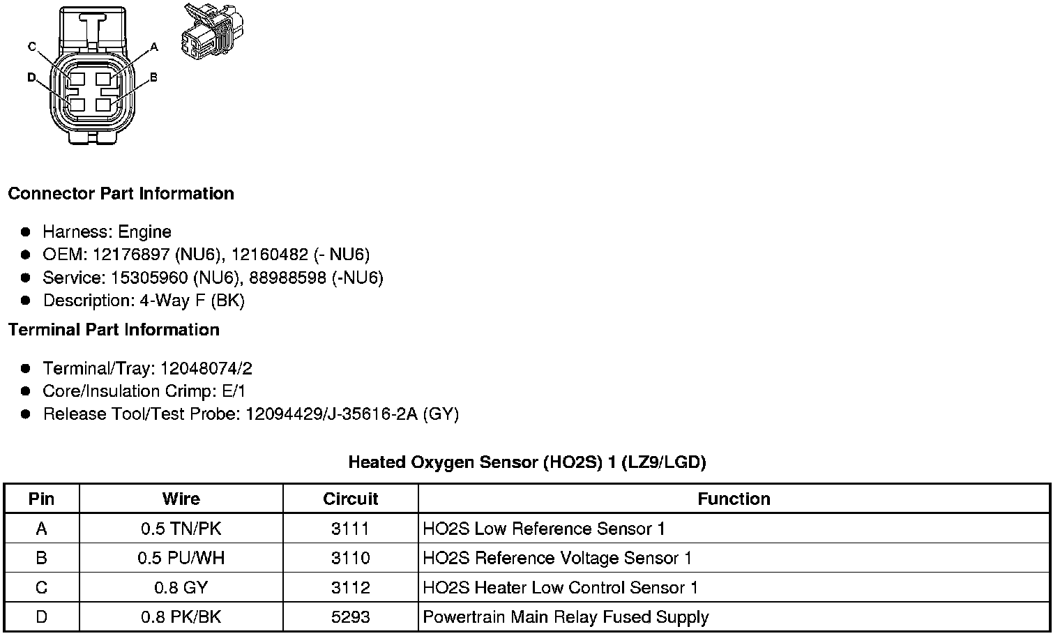 Heated Oxygen Sensor (HO2S) 1 (LZ9/LGD)