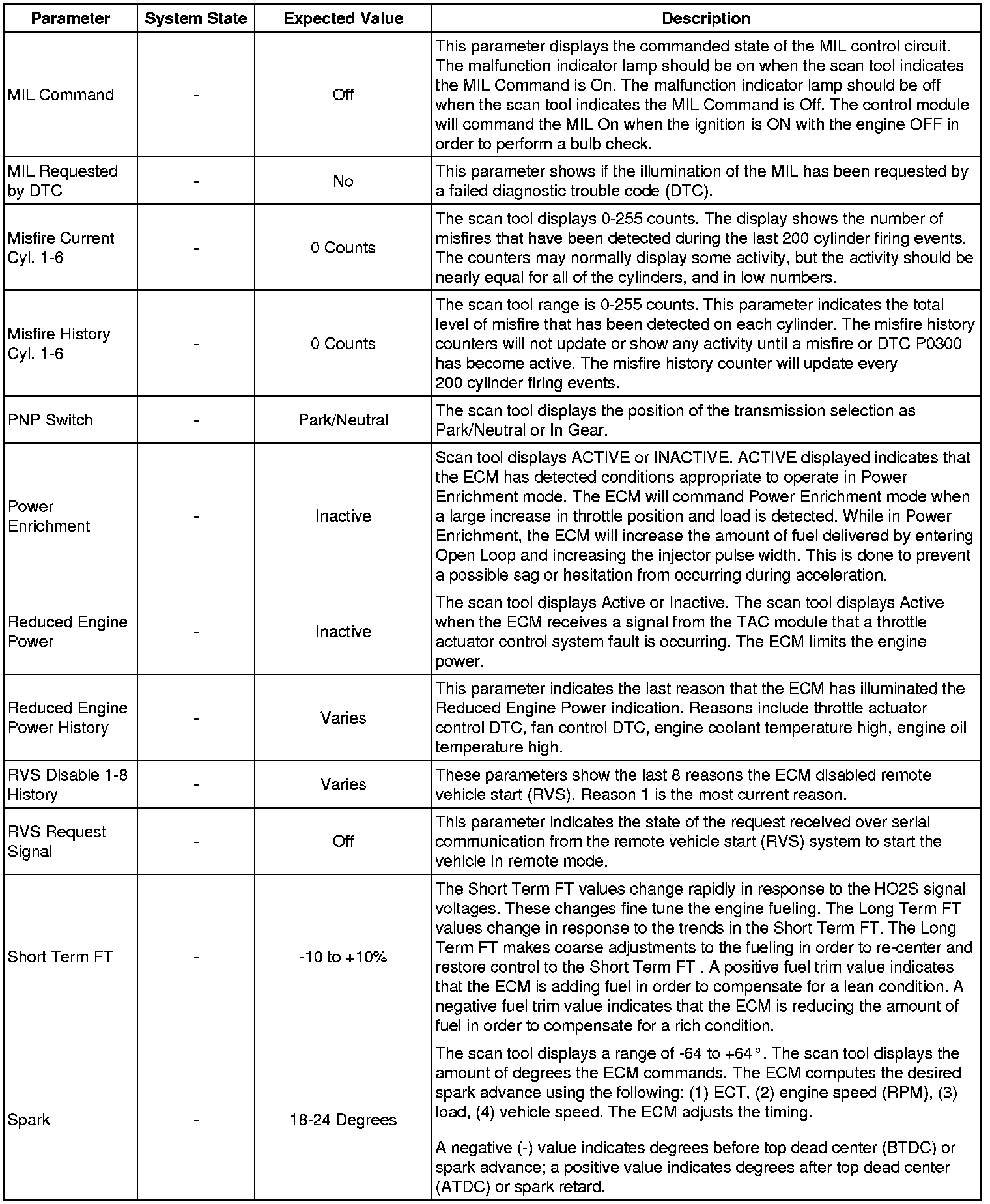 The Engine Control Module (ECM) Scan Tool Data List contains all ECM-related parameters that are available on the scan tool. The list is arranged in alphabetical order. A given parameter may appear in any one of the data lists, and in some cases may appear more than once, or in more than one data list in order to group certain related parameters together.