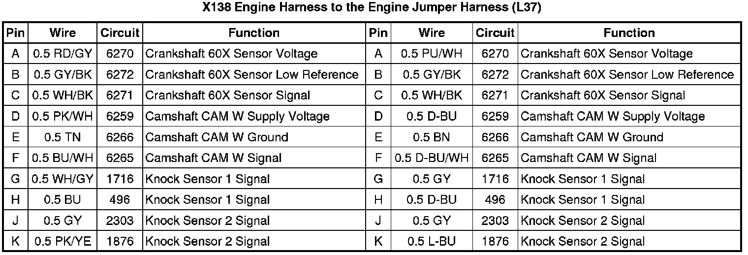 X138 Engine Harness to the Engine Jumper Harness (L37)